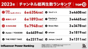 2023年に最も再生されたチャンネルや動画を発表!インフルエンサーパワーランキング by BitStar