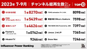 2023年7-9月に最も再生されたチャンネルや動画を発表!インフルエンサーパワーランキング by BitStar