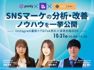 SNSマーケの分析・改善のノウハウを一挙公開 ~Instagram運用×TikTok売れ×決済手段のDX~【10/31】